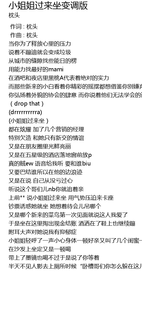 | [00:00.000] | 作词 : 枕头 |
