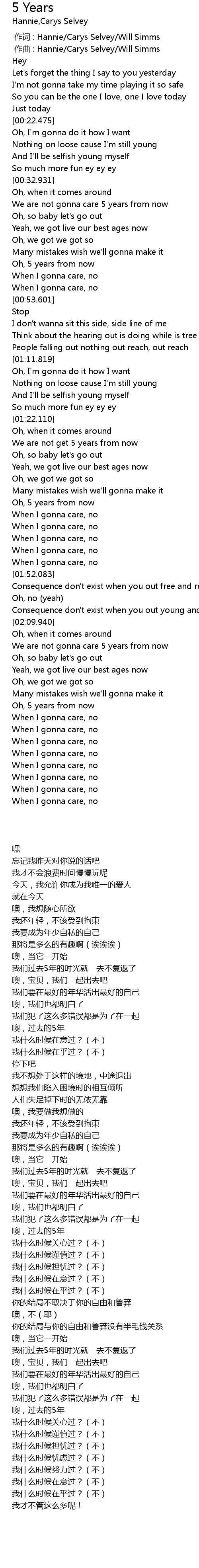 | [00:00.000] | 作词 : Hannie/Carys Selvey/Will Simms |