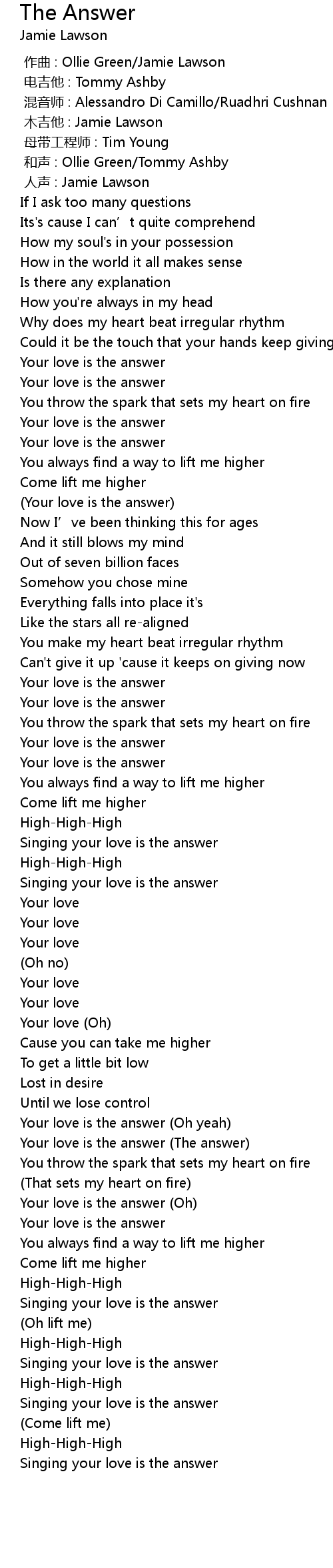 | [02:07.14] | Your love is the answer (The answer) |