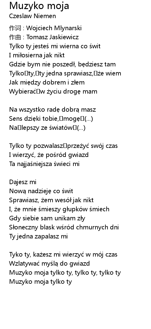 | Muzyko moja tylko ty, tylko ty, tylko ty | |