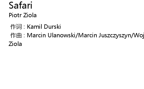 | [00:00.000] | 作曲 : Marcin Ulanowski/Marcin Juszczyszyn/Wojtek Traczyk/Piotr Ziola |