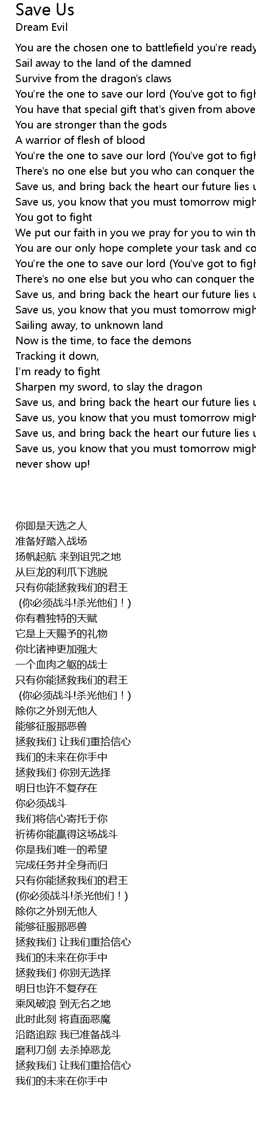 You're the one to save our lord (You've got to fight! Kill 'em all!!) |