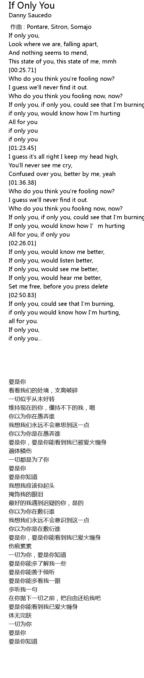 | [00:42.76] | If only you, if only you, could see that I' m burning, |