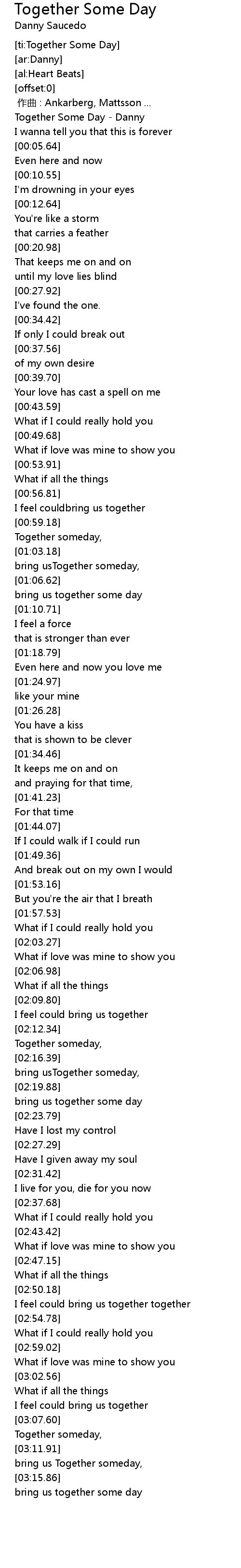 | [00:01.08] | Together Some Day - Danny |