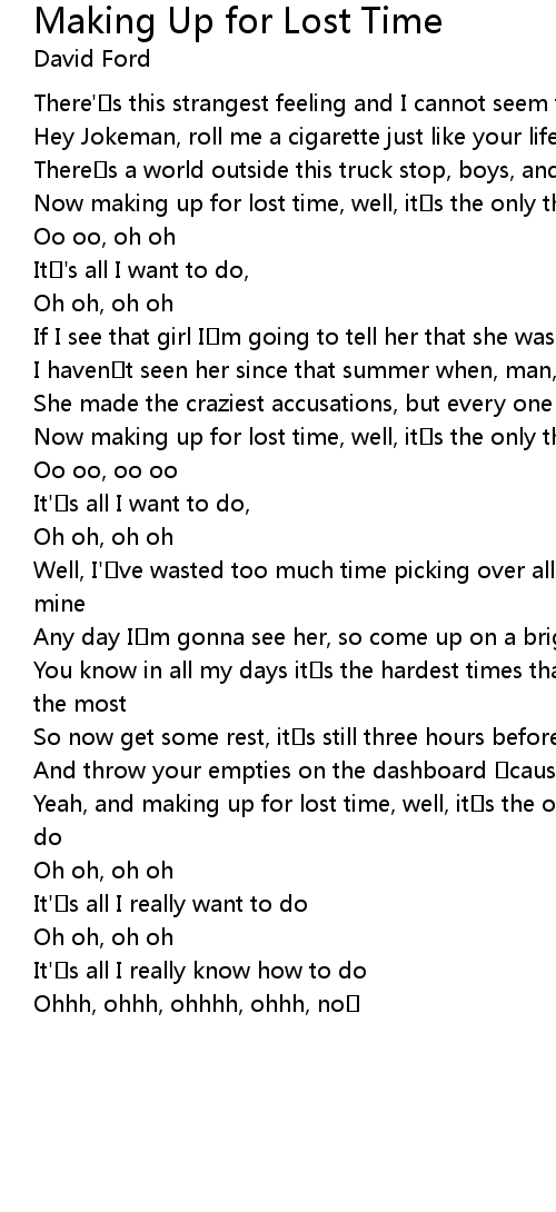 | Yeah, and making up for lost time, well, it s the only thing I really want to do | |