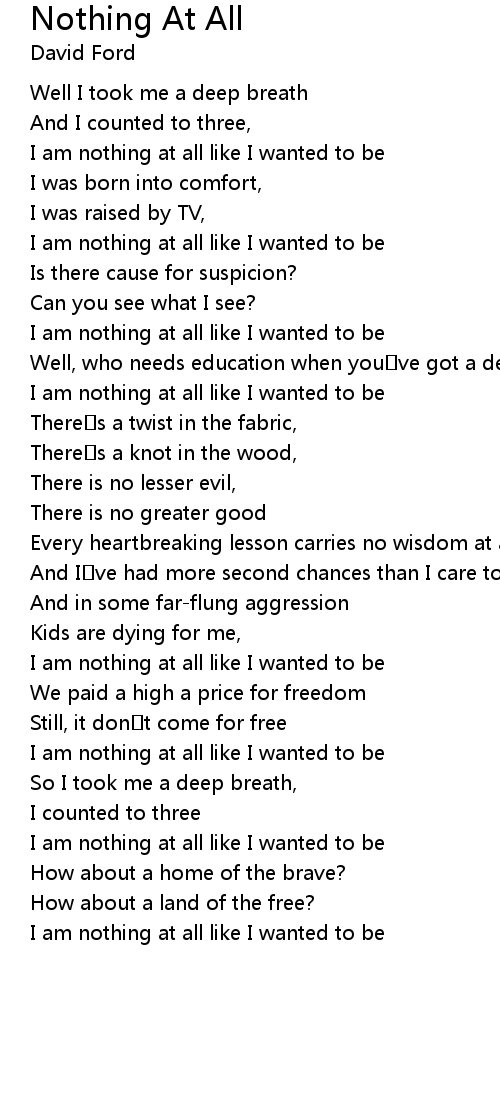 | Song | Nothing At All |