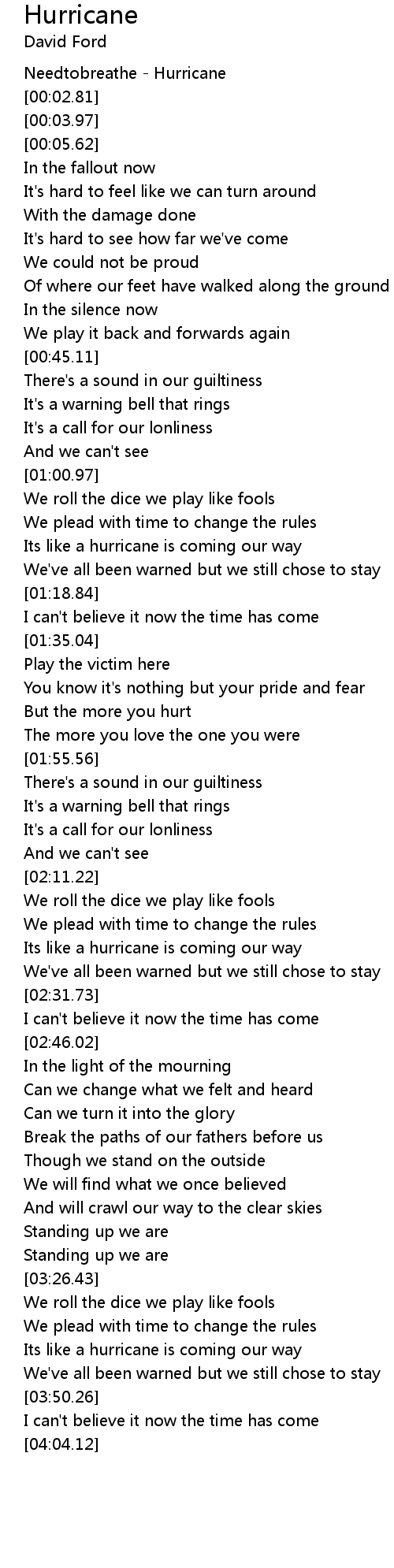 Needtobreathe - Hurricane |