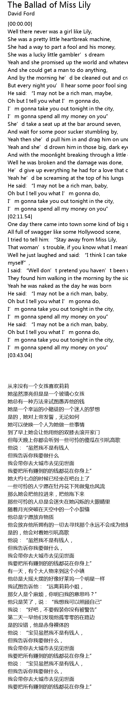 | [02:50.32] | I tried to tell him: “Stay away from Miss Lily, |