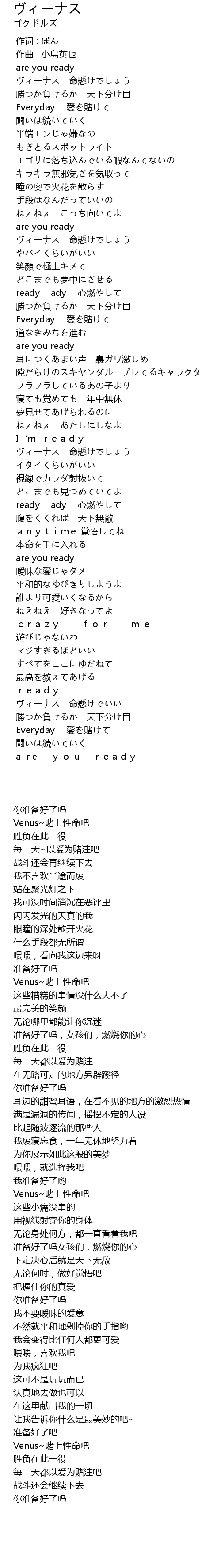 | [00:03.584] | ヴィーナス 命懸けでしょう |
