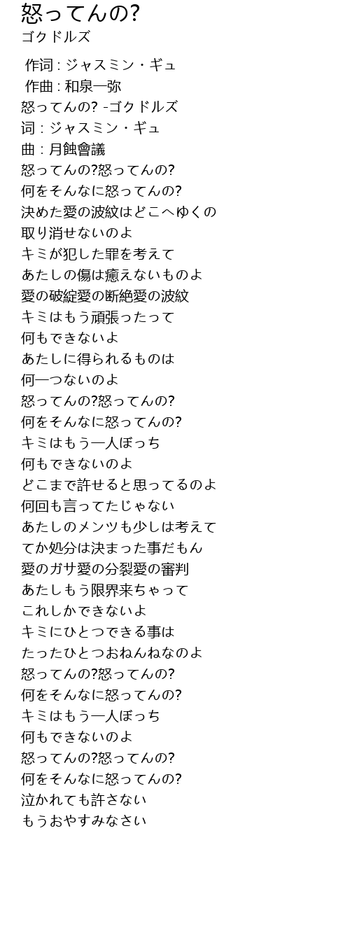 | [00:00.00] | 怒ってんの? -ゴクドルズ |