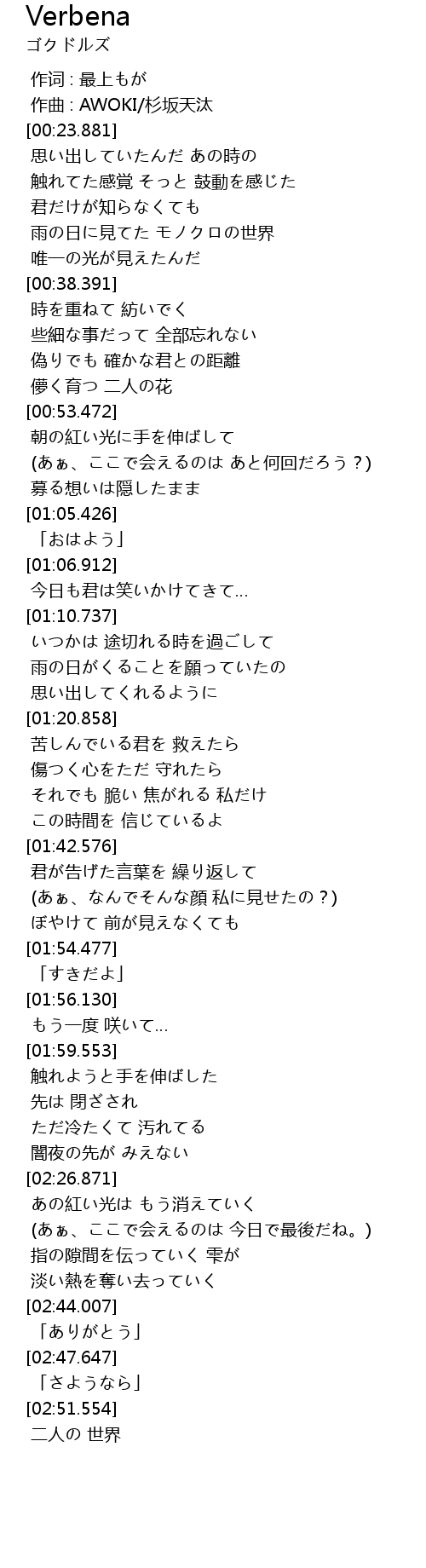 | [00:01.000] | 作曲 : AWOKI/杉坂天汰 |