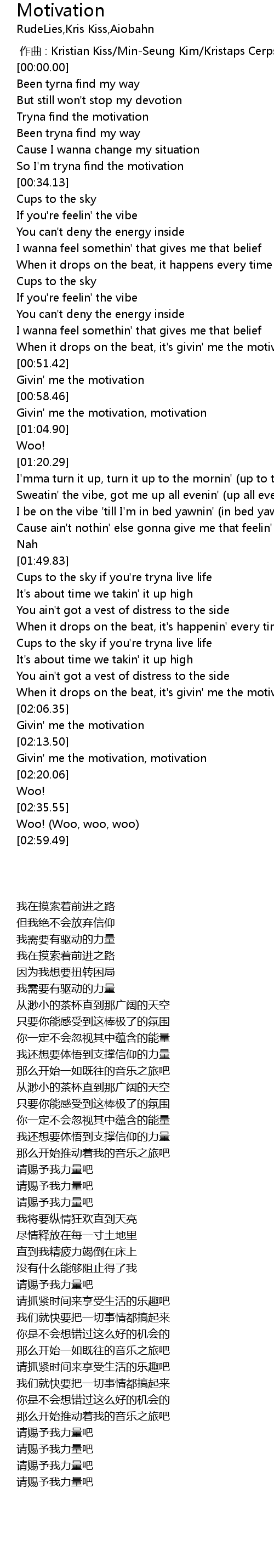 | [00:47.95] | When it drops on the beat, it's givin' me the motivation |