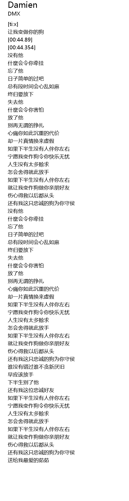 | [00:51.534] | nìng yuàn wǒ biàn zuò gǒu lìng nǐ kuài lè wú yōu |