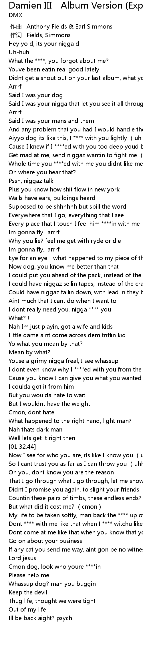 | [02:03.58] | My life to be taken softly, man back the **** up off me |