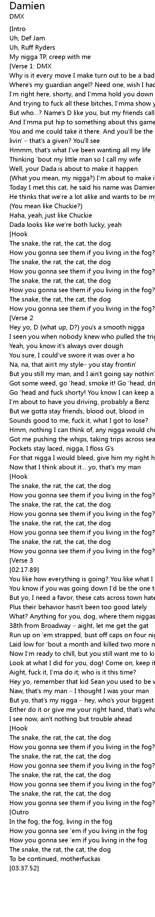 | [03:23.43] | How you gonna see ' em if you living in the fog |