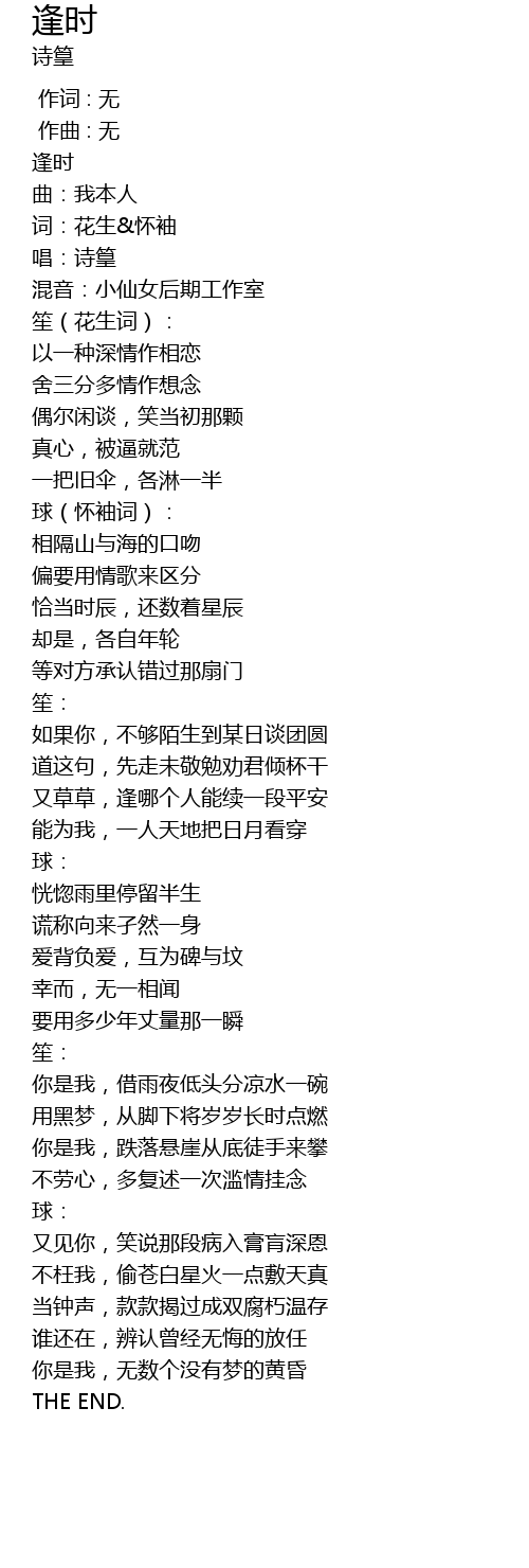 | [00:03.004] | 逢时 |