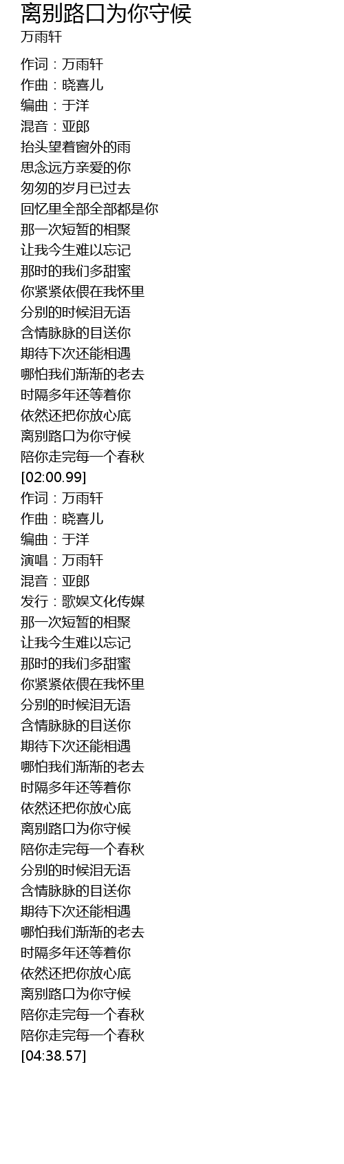| [04:13.32] | lí bié lù kǒu wèi nǐ shǒu hòu |