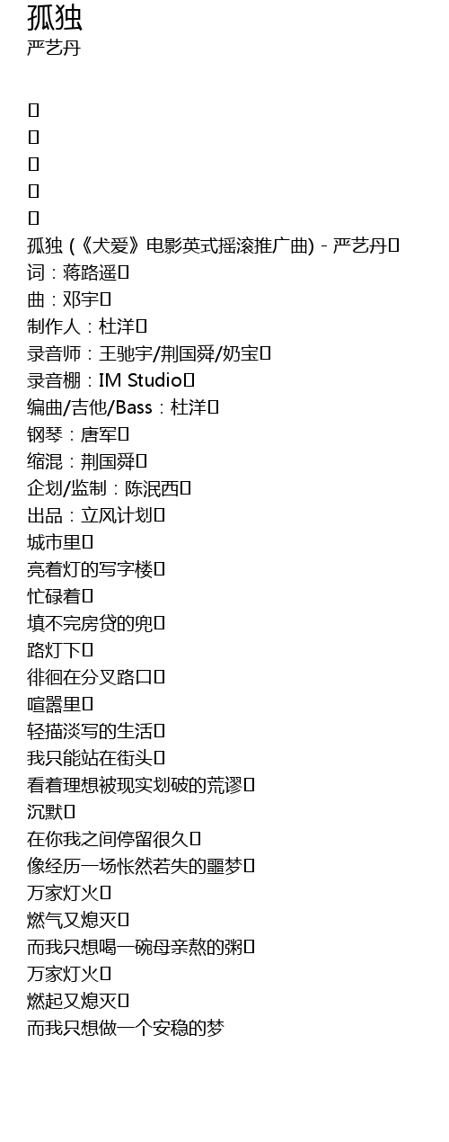 | 孤独 (《犬爱》电影英式摇滚推广曲) - 严艺丹 | |