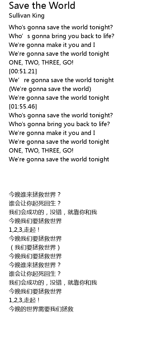 | [00:43.76] | We're gonna save the world tonight |
