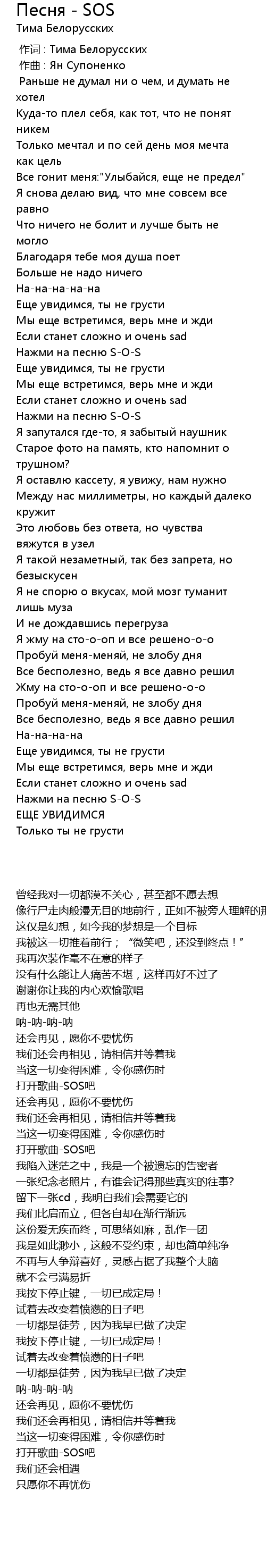 作词 : Тима Белорусских |