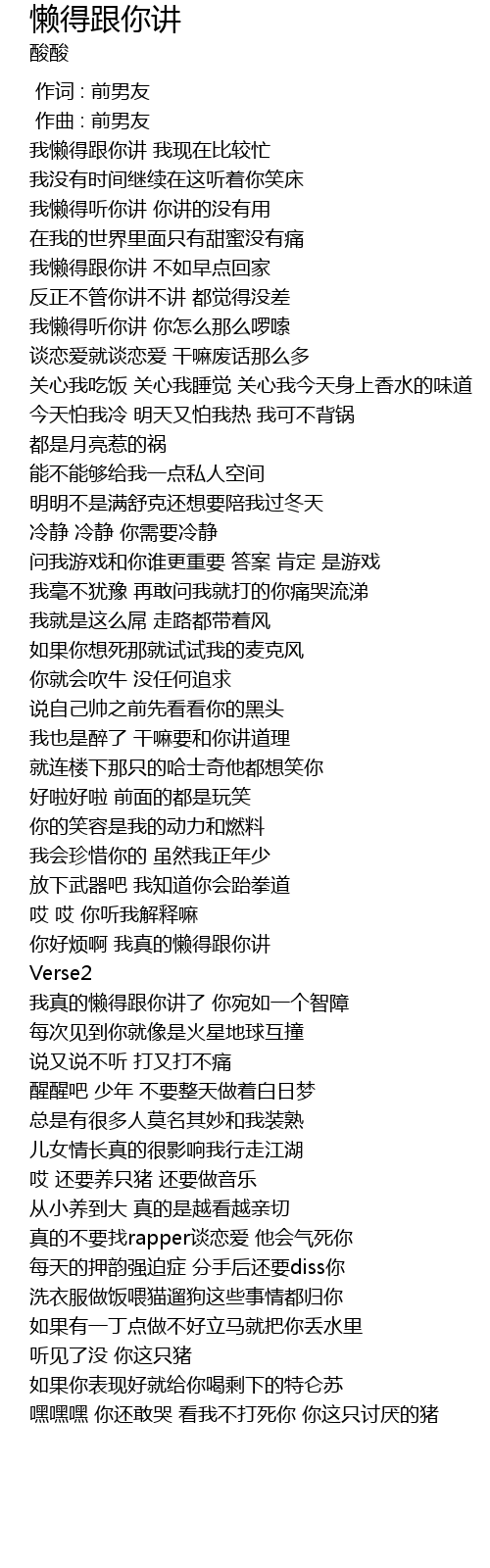 | [00:40.951] | 我懒得听你讲 你怎么那么啰嗦 |