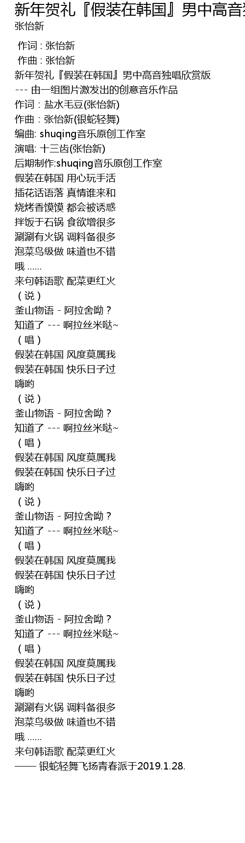 | Song | 新年贺礼『假装在韩国』男中高音独唱欣赏版 |