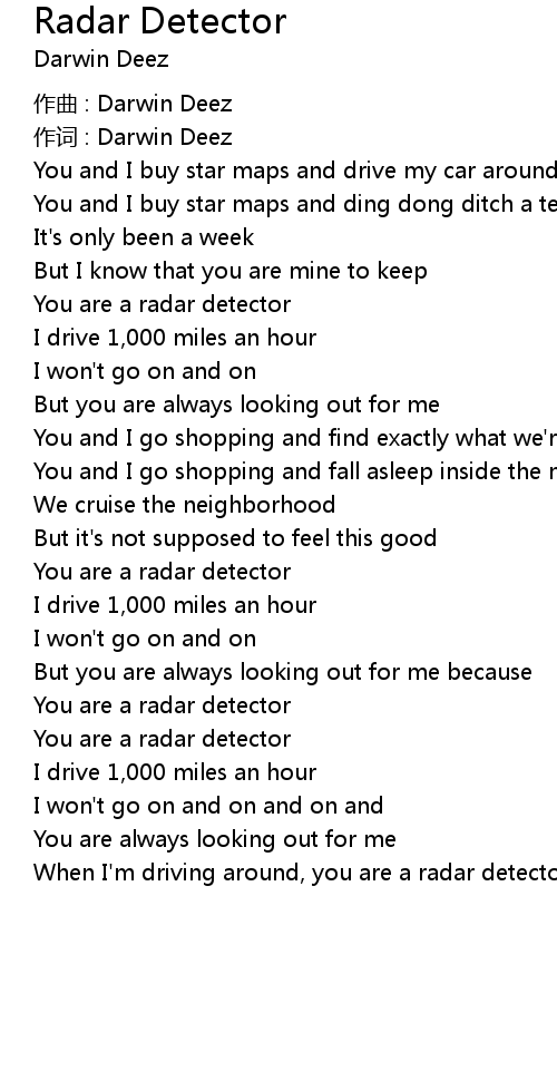 | When I' m driving around, you are a radar detector |