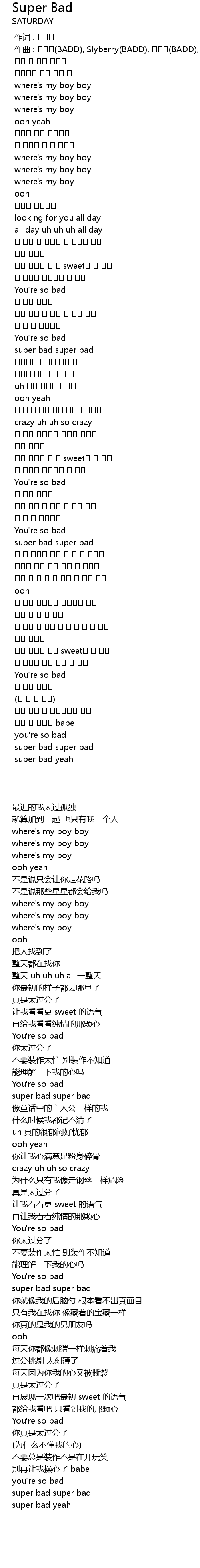 | [00:01.000] | zuò qǔ : BADD, Slyberry BADD, BADD, |