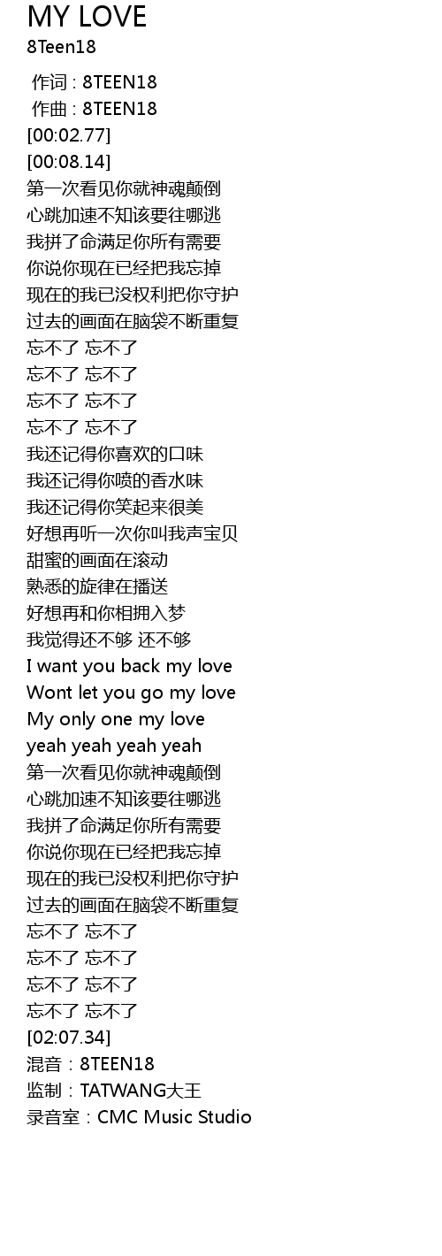 | [02:07.34] | 混音:8TEEN18 |