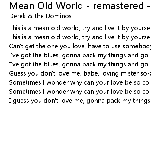This is a mean old world, try and live it by yourself. |