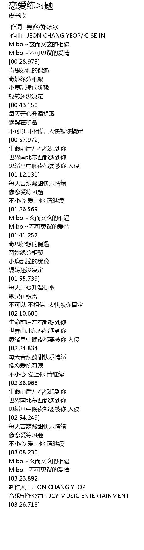 | [03:16.074] | Mibo~不可思议的爱情 |