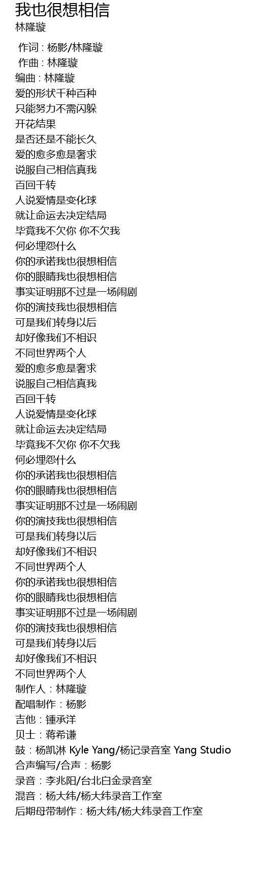 | [04:01.127] | 配唱制作:杨影 |