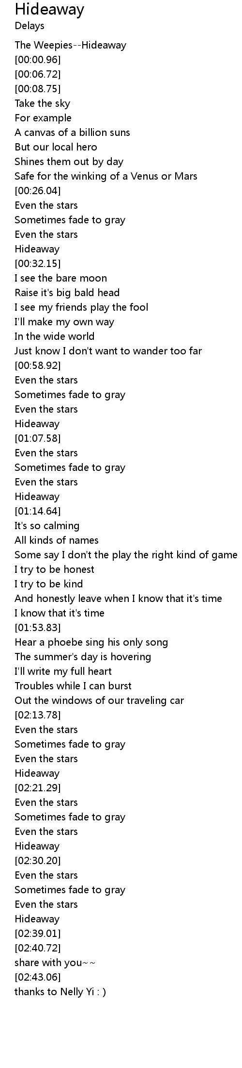 | [02:37.51] | Hideaway |