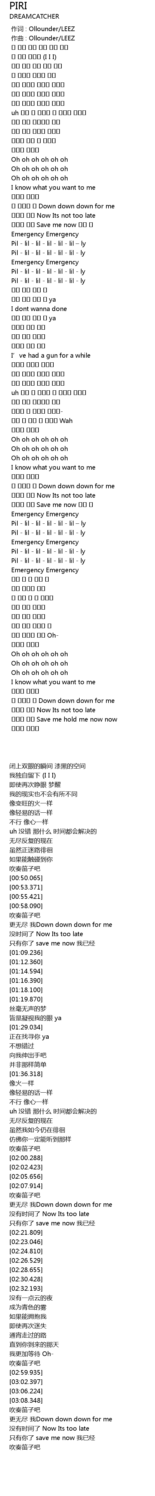 | [01:19.870] | Pil lil lil lil lil lil ly |