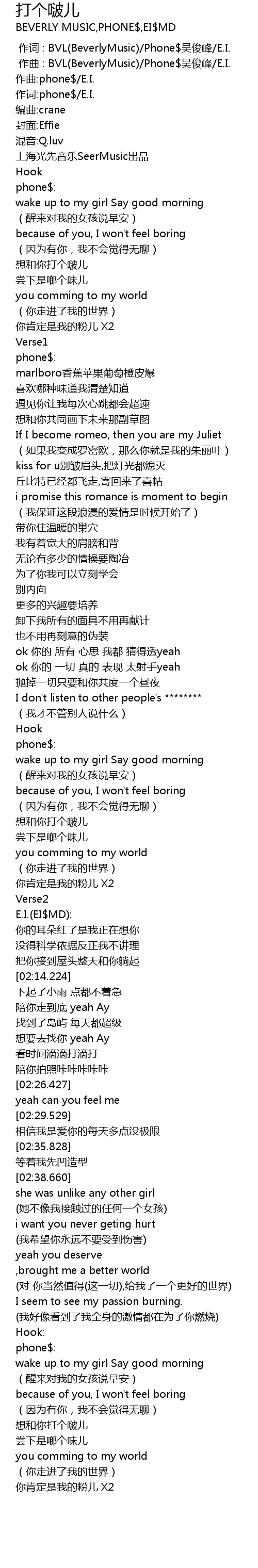 | [00:00.000] | zuo ci : BVL BeverlyMusic Phone wu jun feng E. I. |