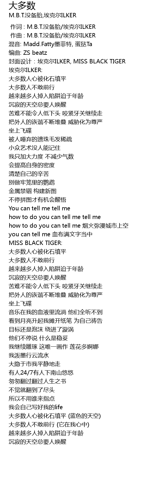 | [00:10.091] | 封面设计:埃克尔ILKER, MISS BLACK TIGER |