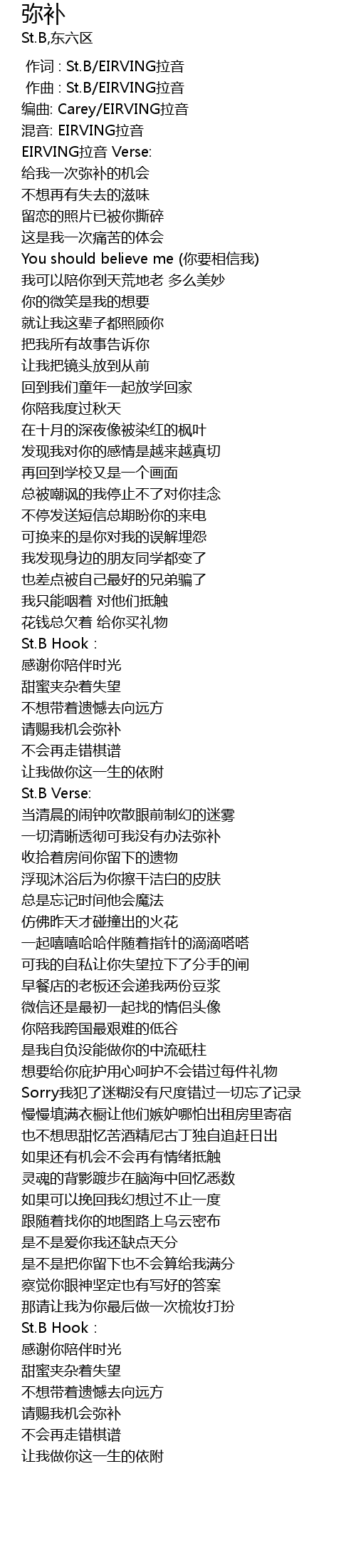 | [00:00.000] | 作词 : St.B/EIRVING拉音 |