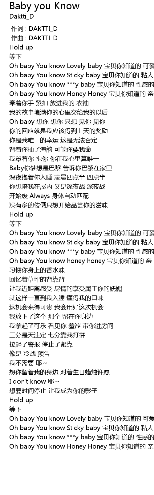 | [00:34.113] | Oh baby You know ***y baby 宝贝你知道的 性感的宝贝 |