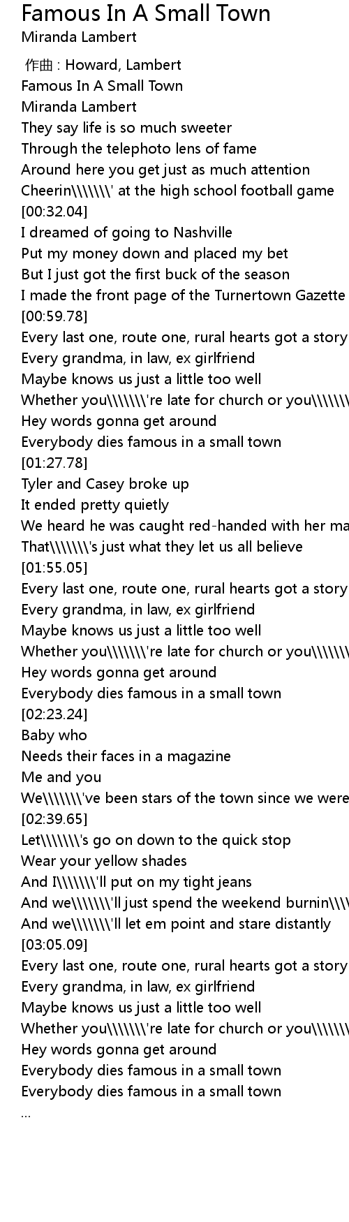 | [00:55.36] | I made the front page of the Turnertown Gazette |