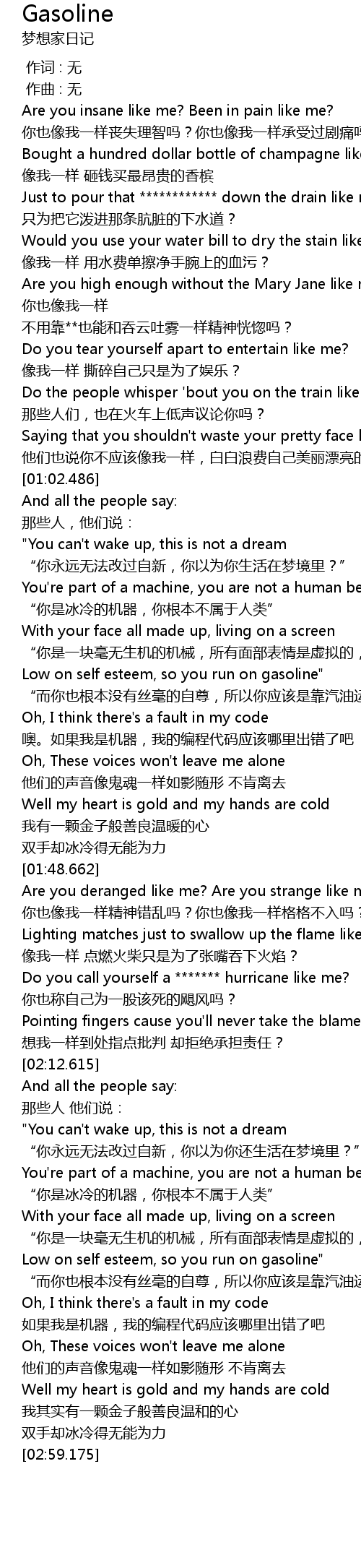 | Song | Gasoline |