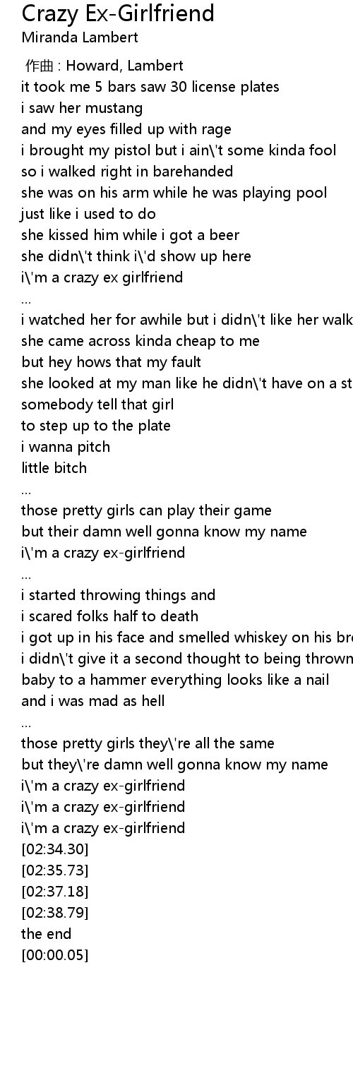 | [00:56.34] | i\'m a crazy ex girlfriend |