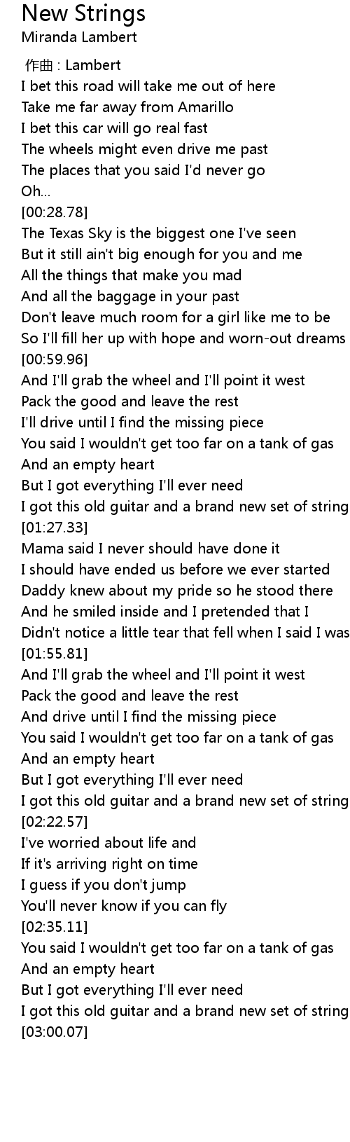 | [02:16.11] | I got this old guitar and a brand new set of strings |