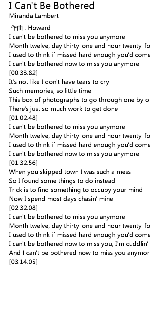 | [00:02.87] | I can't be bothered to miss you anymore |