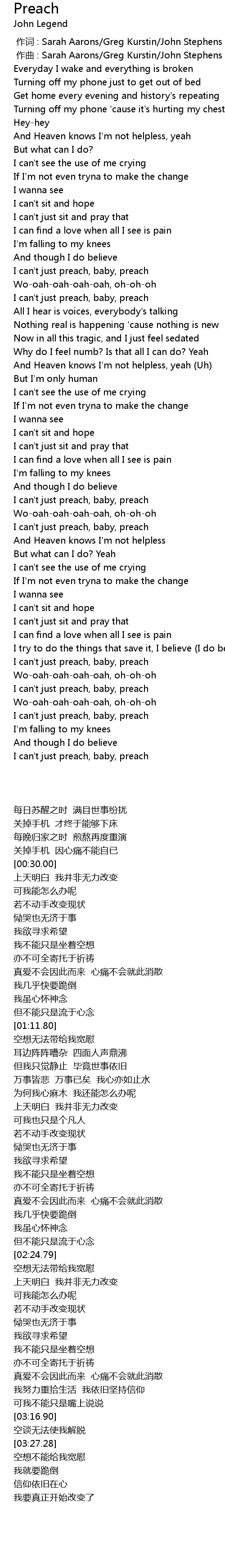 | [03:32.29] | I can' t just preach, baby, preach |