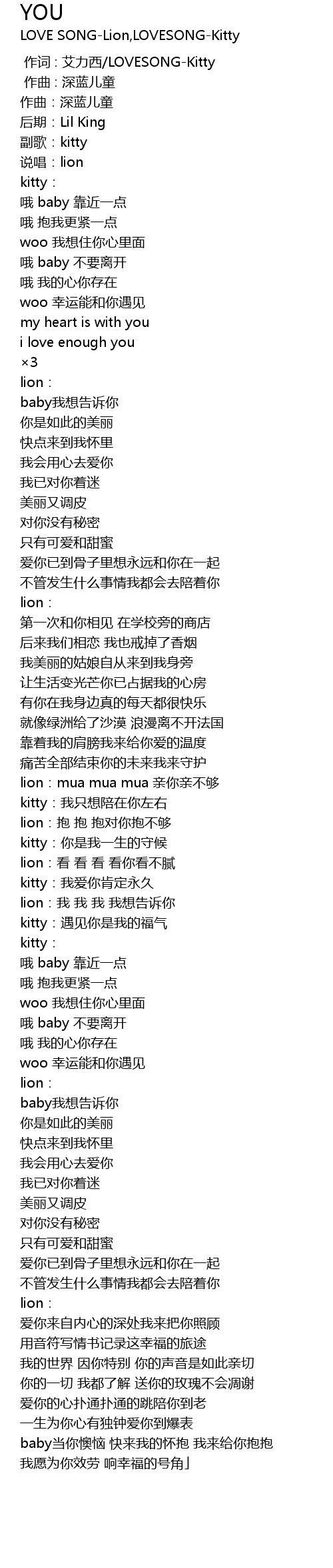 | [01:31.267] | lion:mua mua mua 亲你亲不够 |