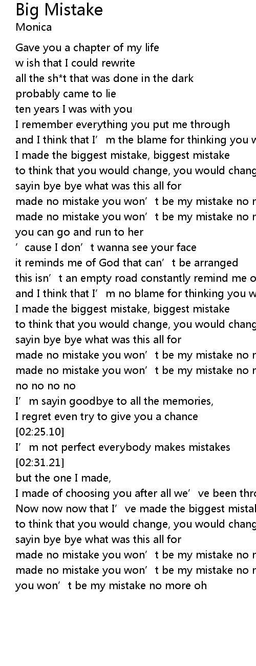 | [01:37.28] | I made the biggest mistake, biggest mistake |