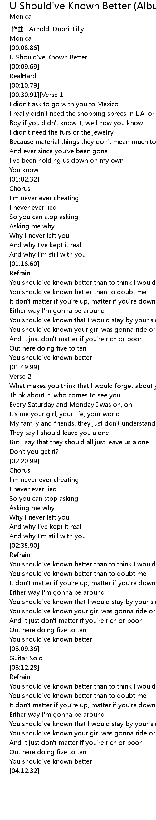 | [01:32.89] | You should' ve known that I would stay by your side |