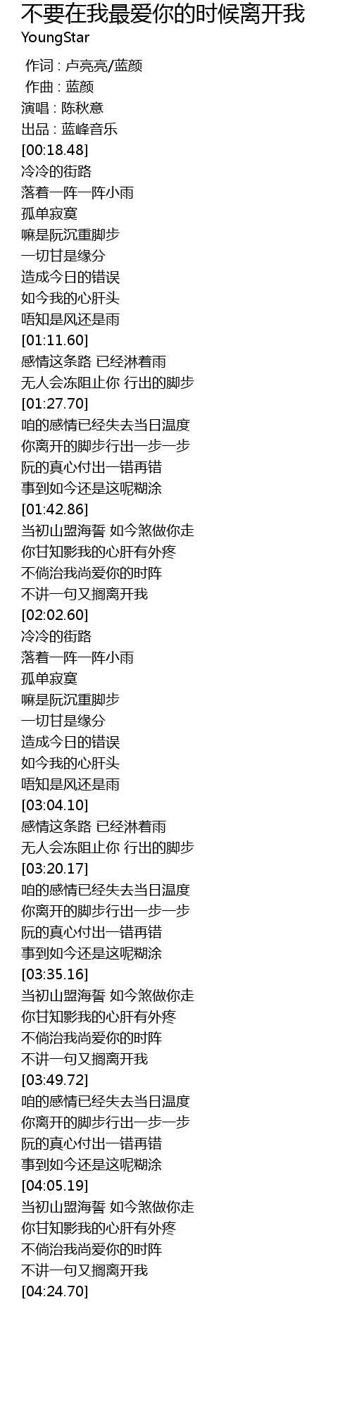 | [04:17.29] | bù jiǎng yī jù yòu gē lí kāi wǒ |