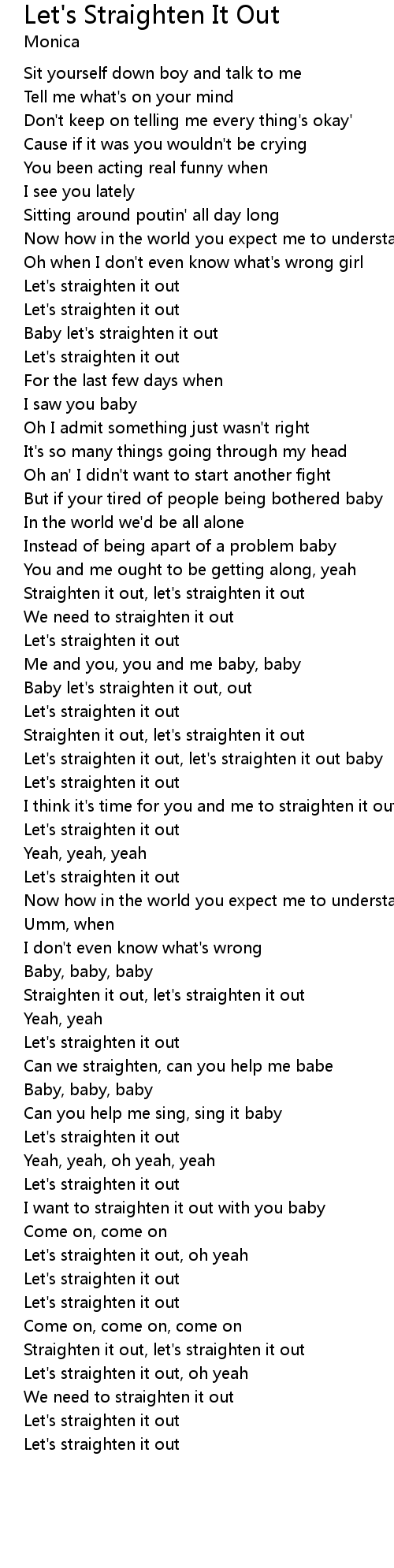 Baby let's straighten it out |