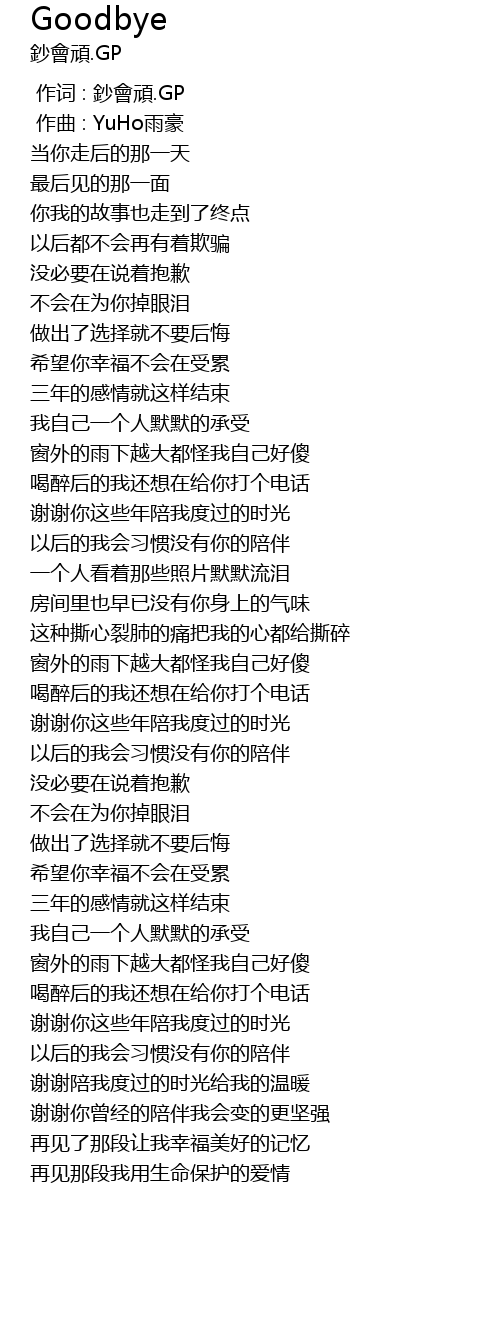 | [00:00.000] | 作词 : 鈔會頑.GP |